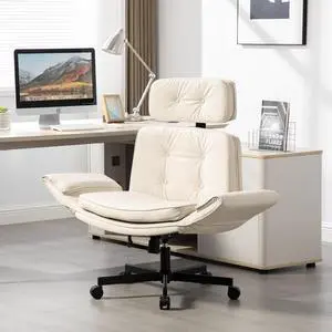 Furniliving Upgraded Criss Cross Chair with 6-Position Adjustable Arms, Pet-Friendly PU Leather High Back Swivel Vanity Chair with Wheels, Comfortable Wide Computer Desk Chair, Cream White