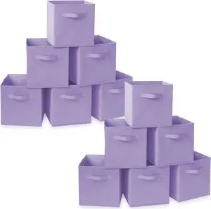 Casafield Set of 12 Collapsible Fabric Cube Storage Bins, Lavender - 11" Foldable Cloth Baskets for Shelves, Cubby Organizers & More