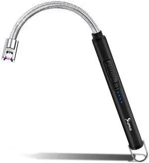 SUPRUS Electric Candle Lighter USB Type C Rechargeable Lighter Steel Shell & Hanging Hook with 360° Flexible Neck (Black)