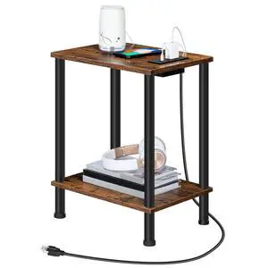 Side Table with Charging Station, Small End Table with USB Port and Outlet, Nightstand with 2-Layer Storage Shelves for Small Spaces, Living Room, Bedroom, Stable Frame, Rustic Brown BF09UBZ01