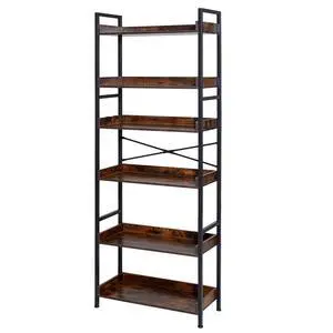 Industrial Bookshelf, 6-Tier, Vintage Ladder Shelf Bookshelves and Bookcases, with Metal Frame, Book Organizer with Open Shelves, for Living Room, Bedroom, Kitchen, Home Office, Rustics Brown