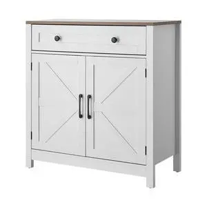 Coffee Bar Cabinet, Farmhouse Coffee Bar Table with Drawer, Buffet Stand Cabinet with 2 Barn Door, Sideboard Buffet Station for Living Room, Entryway, Kitchen, 29.5 x 14.7 x 31.5 in, White