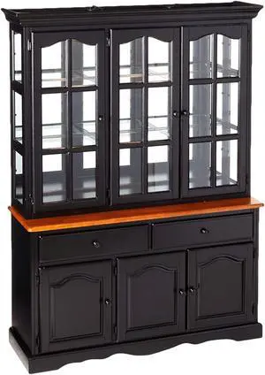Sunset Trading Black Cherry Selections Treasure Buffet and Lighted Hutch | Antique Black and Cherry