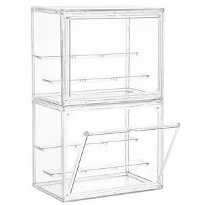 Small Acrylic Display Case for Collectibles 3 Layer Adjustable Display Case with Magnetic Door Clear Stackable Display Box for Mini Figures, 2 Pack