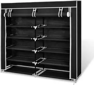 vidaXL Fabric Shoe Cabinet with Cover 45" x 11" x 43" Black