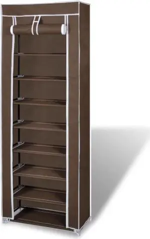 Fabric Shoe Cabinet with Cover 22" x 11" x 64" Brown