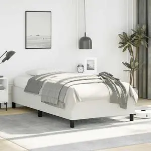 vidaXL Twin Size Bed Frame with Plywood Slats, Platform Bed Frame, Faux Leather Upholstered Mattress Foundation, No Box Spring Needed & Easy Assembly, White, without Mattress