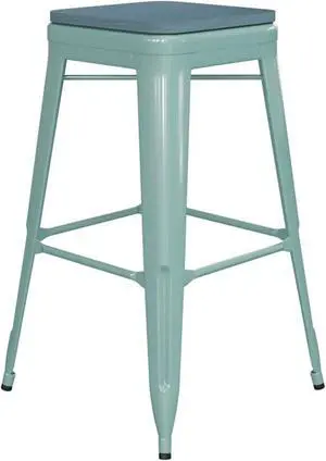 Cierra Set of 4 Commercial Grade 30" High Backless Gunmetal Metal Indoor Bar Height Stools with Black All-Weather Poly Resin Seats