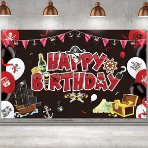 Decorations Banner & Backdrop - Happy Birthday Themed Wall Supplies for Treasure Hunt Party - 70.8 x 43.3 in