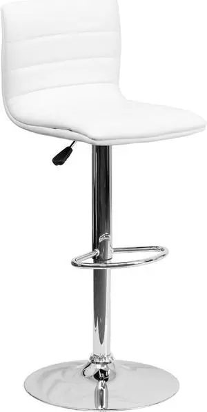 Flash Furniture Contemporary White Vinyl Adjustable Height Barstool with Chrome Base