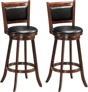 ERGOMASTER 29 Swivel Bar Stools with Back, Rubber Wood, Brown, Set of 2