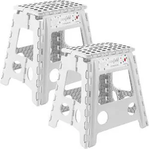 Casafield 16" Folding Step Stool with Handle (Set of 2), White - Portable Collapsible Small Plastic Foot Stool for Adults - Use in the Kitchen, Bathroom and Bedroom