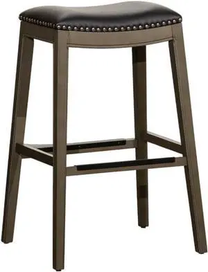 DTY Indoor Living Durango 30" Bar Height Saddle Stool, Weathered Gray, Black Leather