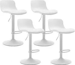 NOBPEINT Upholstered Contemporary Air Lift Adjustable Swivel Barstools (White, Set of 4)