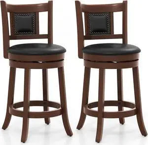 Set of 2 PU Leather Swivel Bar Stools Pub Chairs