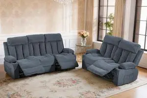 VANBOW Manual Recliner Sofa Set, 2 Piece Reclining Living Room Furniture Sets with Cup Holders for Home Theater, Office (Blue, Sofa+Loveseat)