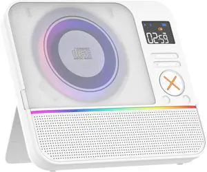 CD Player Portable, MONODEAL HiFi Stereo Portable CD Player with Bluetooth, Desktop Player Bluetooth for Home with Remote Control, RGB Light, Supports USB/AUX/Sleep Timer(White)