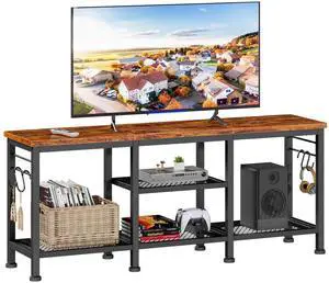 TV Stand for TVs up to 55 Inch, Entertainment Center with Open Storage Shelves, Media Console Table with Soundbar Shelf for Living Room, Bedroom, Rustic Brown
