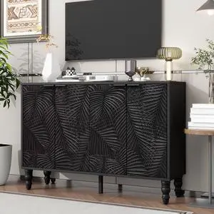U-Can 47.2'' Modern TV Stand, Entertainment Center Media Console with 2 Spacious Storage Space, Solid Wood Legs and Anti-tip Device For Living room, Up to 43''