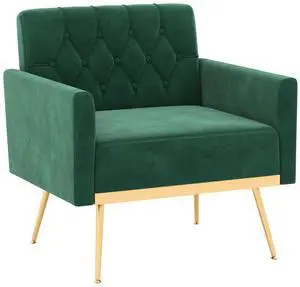 SlickBlue Modern Velvet Accent Chair with Button Tufted Back Golden Metal Legs and Adjustable Foot Pads-Turquoise