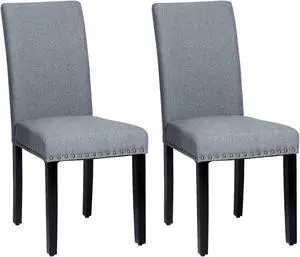 Costway Set of 2 Fabric Dining Chairs Upholstered with Nailhead Trim Light Grey
