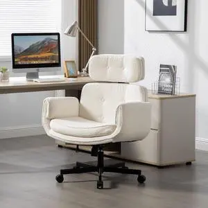 Furniliving Upgraded Criss Cross Chair with 6-Position Adjustable Arms, Luxury Boucle High Back Swivel Vanity Chair with Wheels, Comfortable Wide Computer Desk Chair, Ivory White