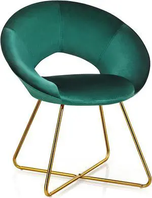Costway Modern Velvet Accent Chair Upholstered Vanity Chair w/Golden Metal Leg Dark Green