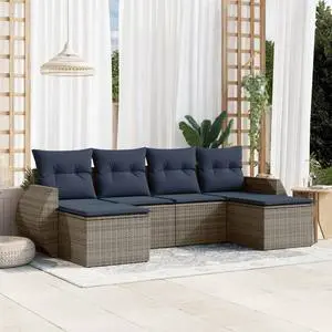 vidaXL 6 Piece Garden Sofa Set with Cushions Grey Poly Rattan