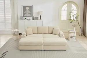 [VIDEO/New]Combination Modular Convertible Sectional Sofa Bed Set,Armrest storage, Stainless steel cup holder, USB, Upholstered Sofa, Deep Seat, Living Room, Loft, Apartment, Office, 2 Colors- Finish: Beige