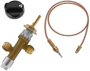 Low Pressure LPG Propane Gas Fireplace Fire Pit Flame Failure Safety Control Valve with Thermocouple Knob Switch Kit with 5/8-18UNF(3/8" Flare Inlet & Outlet) for Propane Fire Pit, Fireplace