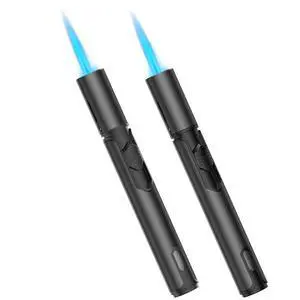 LcFun Torch Lighter 2 Pack Windproof Adjustable Single Jet Flame Butane Lighter Refillable Gas Lighter for Candle Camping Grill BBQ Fireplace (Butane Not Included)
