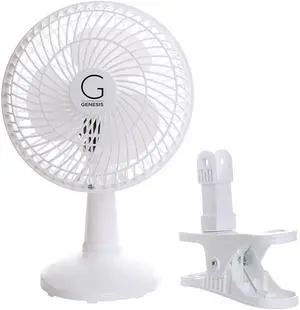 Genesis 6-Inch Clip Convertible Table-Top & Clip Fan Two Quiet Speeds - Ideal For The Home, Office, Dorm, More Off White