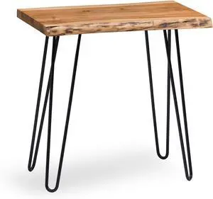 Hairpin Natural Live Edge End Table, Acacia Wood Top with Unique Patina Metal Legs, Protective Nylon Floor Levelers, Clear Finish, 15 in x 20 in x 27 in