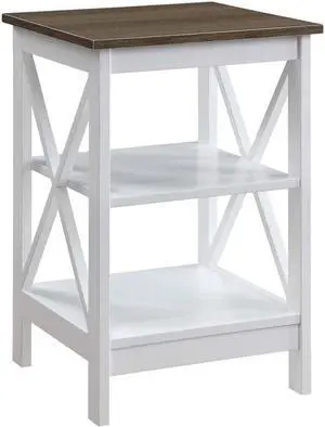 Convenience Concepts Oxford End Table with Shelves, Driftwood/White
