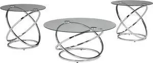 Signature Design by Ashley Hollynyx Contemporary Round 3-Piece Occasional Table Set, Includes Coffee Table and 2 End Tables, Chrome