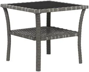 Outsunny Rattan Side Table, Outdoor End Table with Storage Shelf, Aluminum Frame Square, Coffee Table with Tempered Glass Top, Mixed Gray