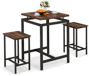 SlickBlue 3 Pieces Pub Dining Table Set with Floating Tabletop and Footrest-Rustic Brown