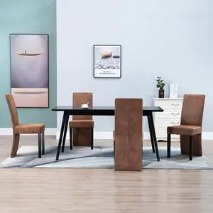 vidaXL Dining Chairs 4 Pcs Side Chair for Home Kitchen Brown Faux Suede Leather