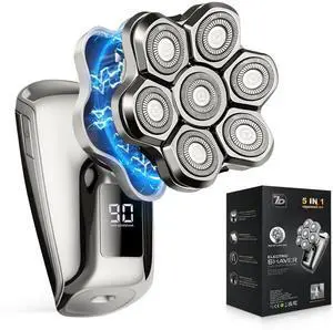 7D Electric Bald Shaver - 5-in-1 Dry/Wet Men's Head Shaver with Led Display & IPX7 Waterproof, Detachable, Rechargeable Razor