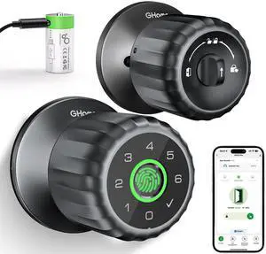 Fingerprint Door Knob, Biometric Door Lock with Auto Lock, Passage Mode, Rechargeable Battery, Thumbprint Entry Door Knob for Bedroom, Office, Apartment & Front Door