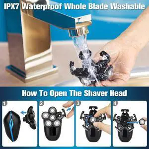 7D Head Shavers for Bald Men, IPX7 Waterproof Wet or Dry Electric Razor for Men/Women, 5-in-1 Detachable Head Shaver, Grooming Kit, LED Display/Type-C Charge, Travel-Friendly, Portable