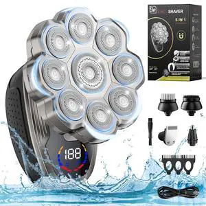 2025 New 9D Head Shavers for Bald Men, 5-in-1 Electric Razor Bawldy 9.0 Floating Pro Ultra Groomie Shaver IPX6 Waterproof with LCD Display Type-C Rechargeable Wet Dry Use Grooming Kit