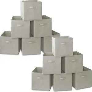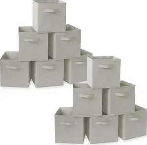 Casafield Set of 12 Collapsible Fabric Cube Storage Bins, Light Gray - 11" Foldable Cloth Baskets for Shelves, Cubby Organizers & More