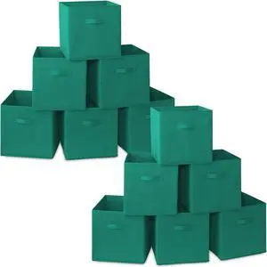 Casafield Set of 12 Collapsible Fabric Cube Storage Bins, Teal - 13" Foldable Cloth Baskets for Shelves, Cubby Organizers & More
