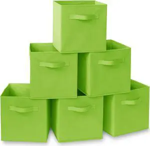 Casafield Set of 6 Collapsible Fabric Cube Storage Bins, Lime Green - 11" Foldable Cloth Baskets for Shelves, Cubby Organizers & More