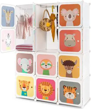 SlickBlue 12 Cube Kids Wardrobe Closet with Hanging Section and Doors