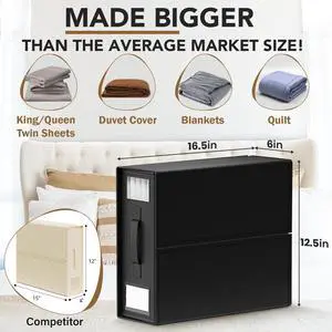 Foldable Linen Closet Organizer with Clear Window & Handles Extra Large Storage for King, Queen Comforters, Blankets, Bedsheets Under Bed Storage, Sheet Organizer (Black, 3-Pack)