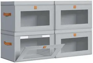 4 Pack Large Bed Sheet Organizers and Storage, (King & Queen Size) Sheet Organizer for Linen Closet, Foldable Bedding Storage Box with Window for Bedsheets, Blanket, Duvet Cover and Pillowcase