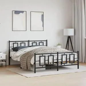 vidaXL Metal Bed Frame with Headboard and Footboard Bedroom Black 59.1"x78.7"