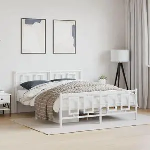 vidaXL Metal Bed Frame with Headboard and Footboard Bedroom White 59.1"x78.7"